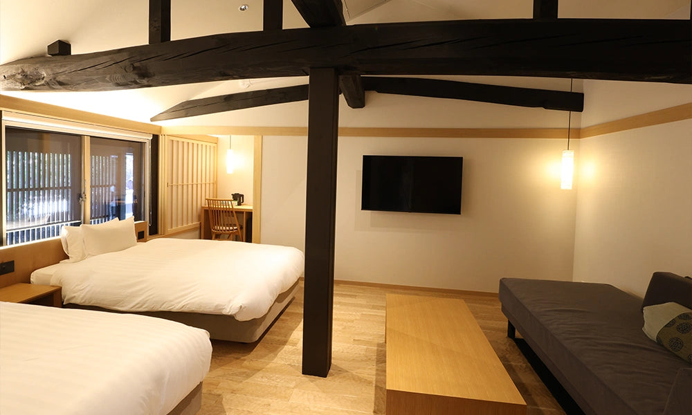 人と文化が交わる自由な空間。多くの人が賑わうフリースペースや焼きたてのピッツァにイタリアン、クラフトビールを楽しめるバー、落ち着いた時間を過ごせるカフェなど、それぞれの「好き」に合わせた滞在空間を提供します。町屋がもつ独特の美しさと歴史の重みを感じながら、心の赴くままに過ごすことができる自由な宿泊体験。古と新が響き合うこの空間で、癒しと発見に満ちた旅を…