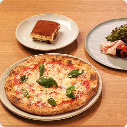 近江の食材やこだわりの美味をのせた自慢の窯焼きピッツァと、クラフトビールやワインに合うイタリアンの一品も多数ご用意。レバー式本格エスプレッソやラテなど、カフェメニューもおすすめです。